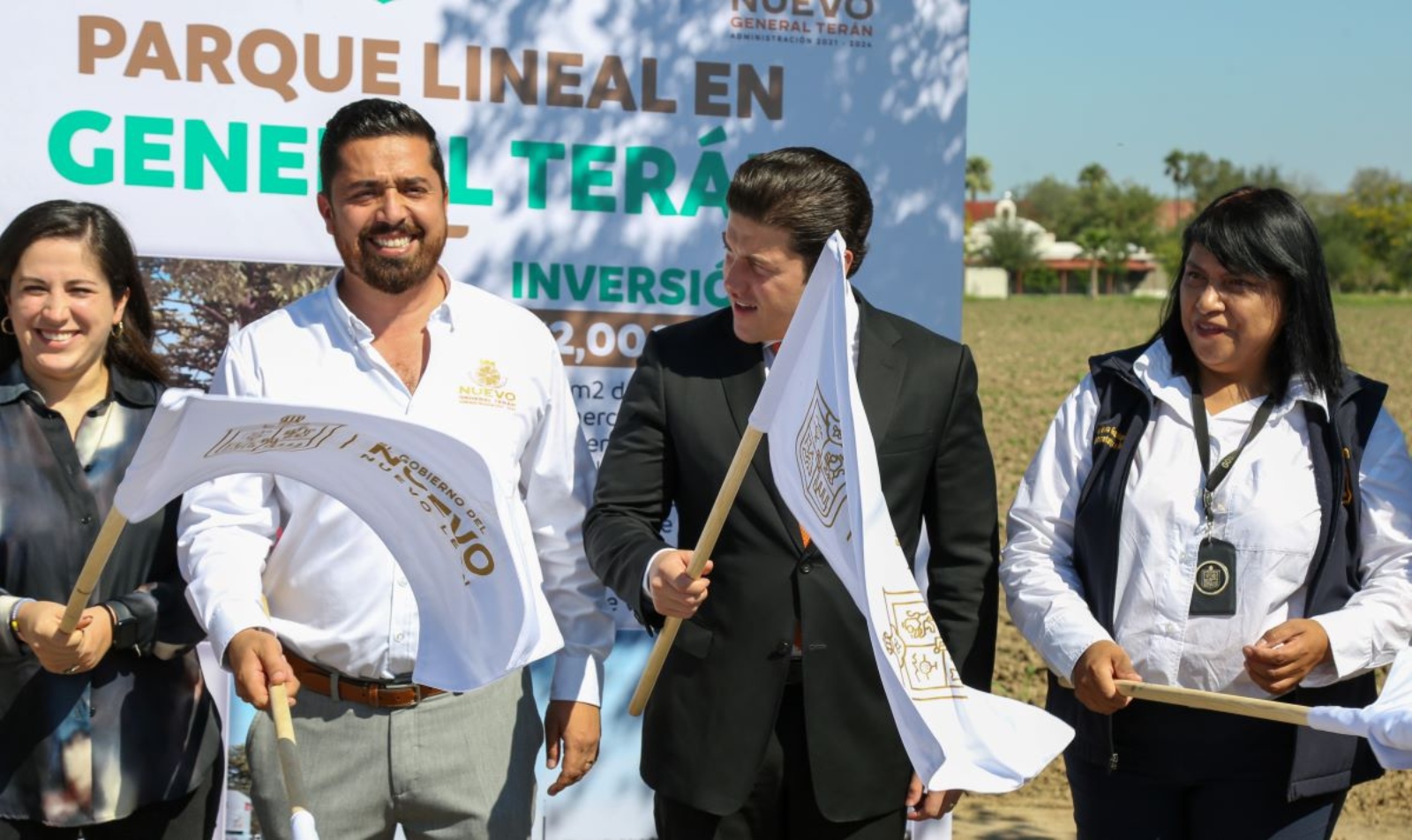 El gobernador de Nuevo León, Samuel García Sepúlveda, hizo entrega del Parque Lineal en el municipio de General Terán, mismo que servirá como punto de esparcimiento y activación física para su población.